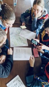 Die Berge beschäftigten uns auch am Nachmittag: Im Rahmen von kreativen und schwierigen Rätseln mussten wir verschiedene Kartenkunde-Techniken anwenden, um den Startpunkt einer Wanderung zu berechnen, die wir anschliessend bei Schnee, Wind und Kälte durchführten. Am Zielpunkt erwartete uns eine Morsenachricht von der anderen Seite des Tals, die es zu entschlüsseln galt.